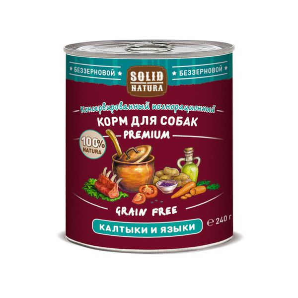 Корм влажный для собак калтыки и языки Premium Solid Natura жестяная банка 240г