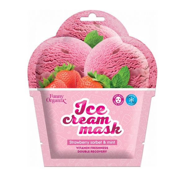 Маска тканевая-мороженое охлаждающая морозная свежесть Strawberry sorbet&Mint Funny Organix/Фанни Органикс 22г
