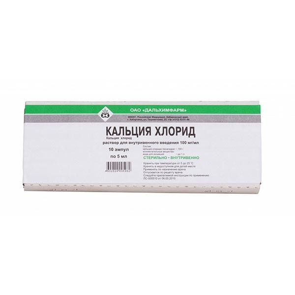 Кальция хлорид р-р для в/в введ. 100 мг/мл 5мл №10