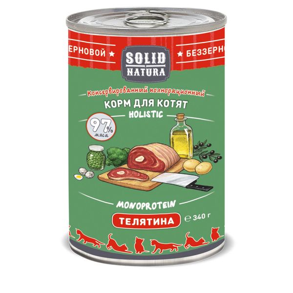Корм влажный для котят телятина Holistic Solid Natura жестяная банка 340г