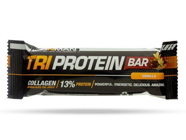 Батончик протеиновый ваниль в темной глазури TRI Protein Bar Ironman 50г 12шт