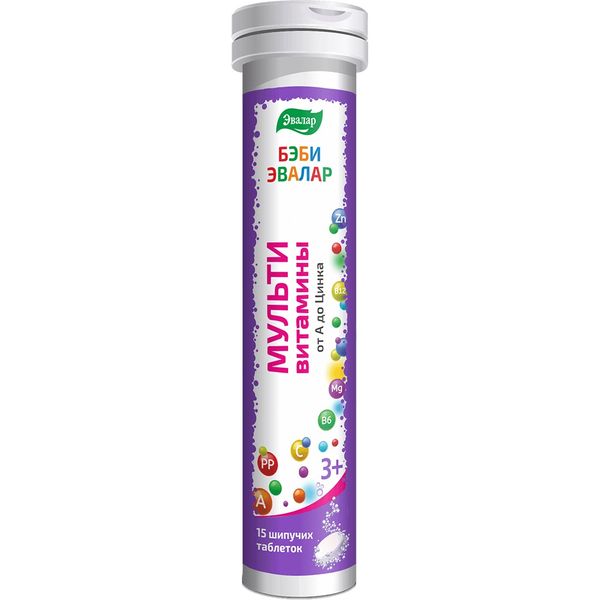 Мультивитамины от А до Zn с 3+ Бэби Эвалар таблетки шипучие 5,2г 15шт
