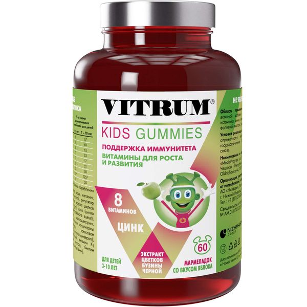 Витрум Кидс мармеладки жев. со вкусом яблока д/детей 3-10 лет 3500мг 60шт
