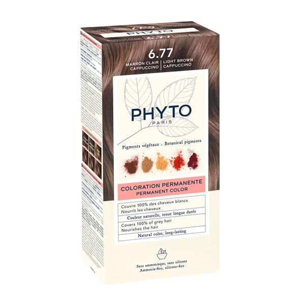 Набор Phyto/Фито: Краска-краска для волос 50мл тон 6.77 Светлый каштан-капучино+Молочко 50мл+Маска-защита цвета 12мл+Перчатки