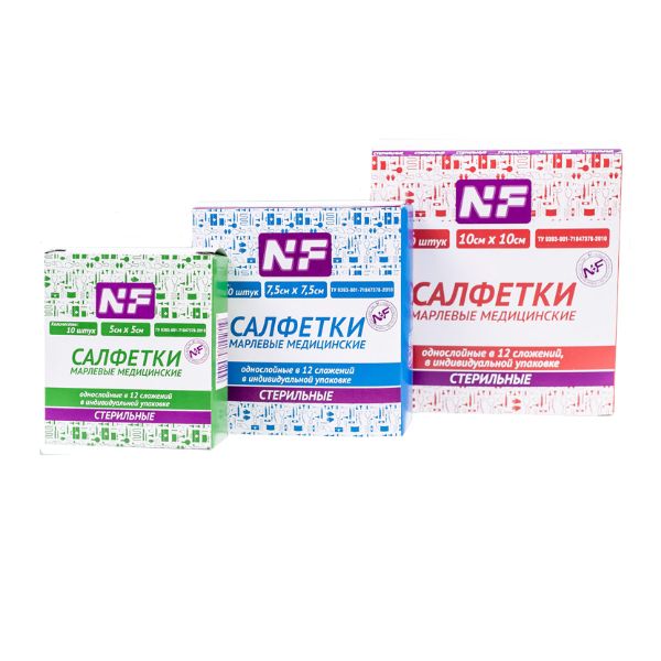 Салфетки марлевые медицинские стерильные 7,5х7,5см 12-слойные в блистере 10шт