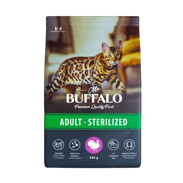 Корм сухой для кошек индейка Sterilized Mr.Buffalo 400г