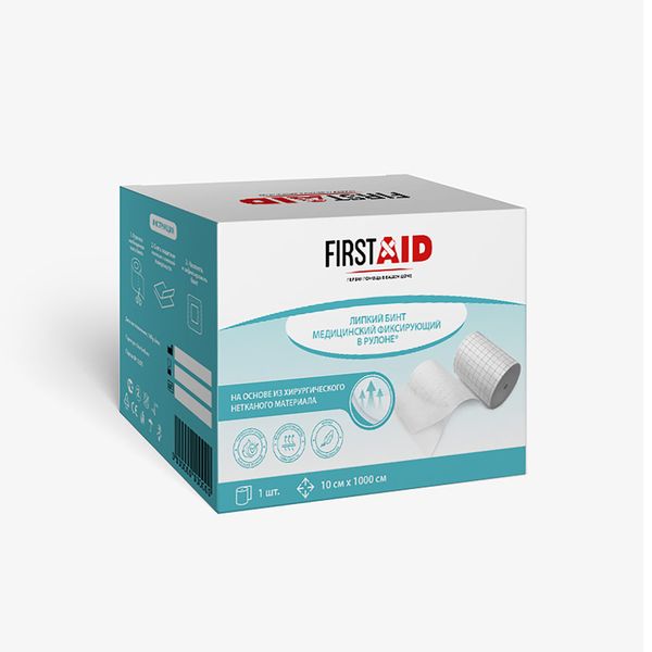 Бинт липкий фиксирующий на нетканой основе First Aid/Ферстэйд 10х1000см