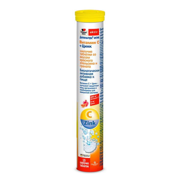 Витамин С+Цинк вкус красного апельсина и граната Activ Doppelherz/Доппельгерц таблетки шипучие 6300мг 15шт