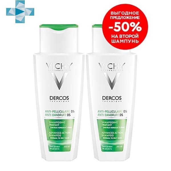 Шампунь-уход для сухих волос против перхоти интенсивный скидка на второй -50% Dercos Vichy/Виши фл. 200мл 2шт