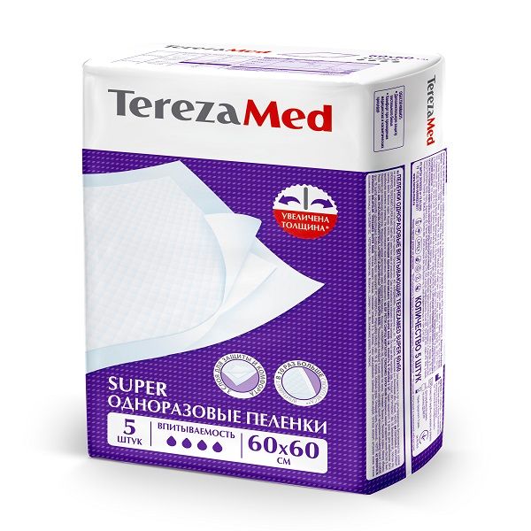 Пеленки одноразовые медицинские впитывающие Super TerezaMed 60x60 5шт