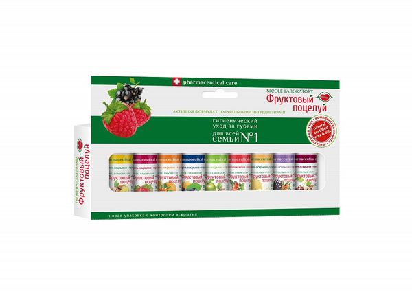 Помада гигиеническая 9 видов Фруктовый поцелуй 9шт