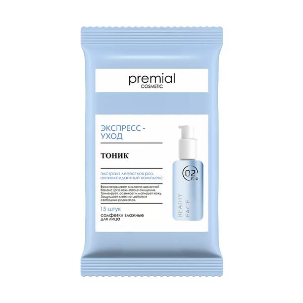 Салфетки влажные косметические с тоником Premial/Премиал 15шт