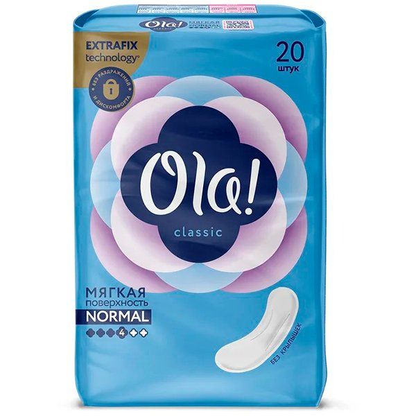 Прокладки женские гигиенические мягкая поверхность без крылышек Classic Normal Ola! 20шт