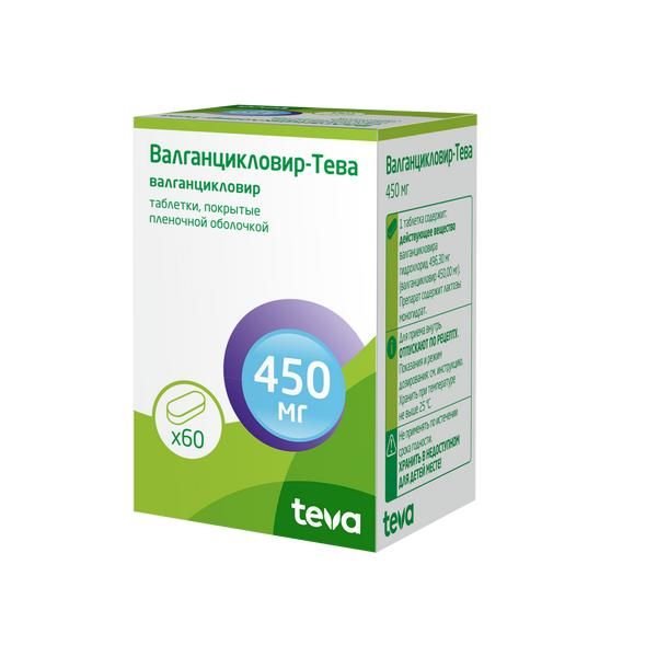 Валганцикловир-Тева таблетки п/о плен. банка 450мг 60шт