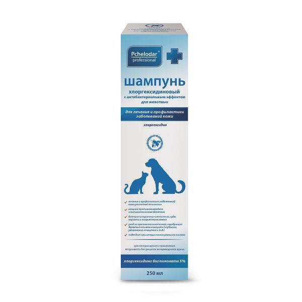 Шампунь антибактериальный с хлоргексидином для животных Пчелодар 250мл