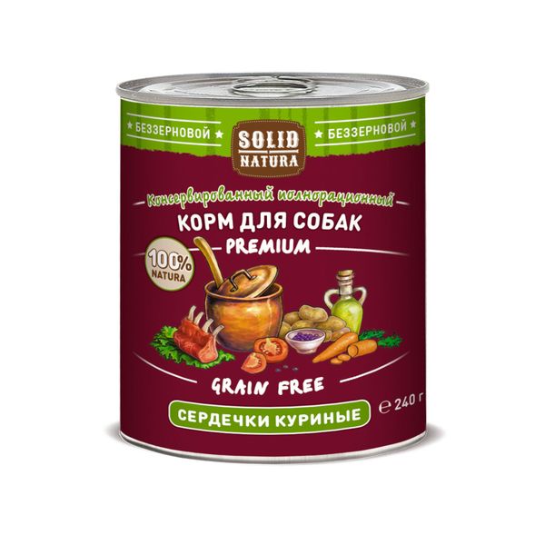 Корм влажный для собак сердечки куриные Premium Solid Natura жестяная банка 240г