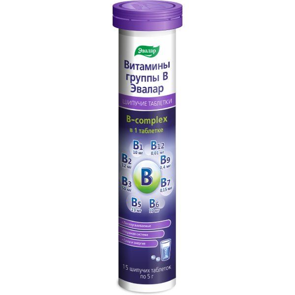 Витамины группы В Эвалар таблетки шипучие 5г 15шт