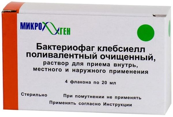 Бактериофаг клебсиелл поливалентный очищенный раствор для приема внутрь, местно и наружно 20мл 4шт