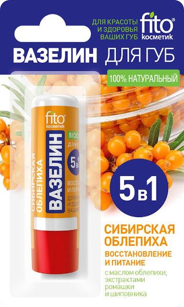 Вазелин для губ восстановление и питание Сибирская облепиха fito косметик 4,5г