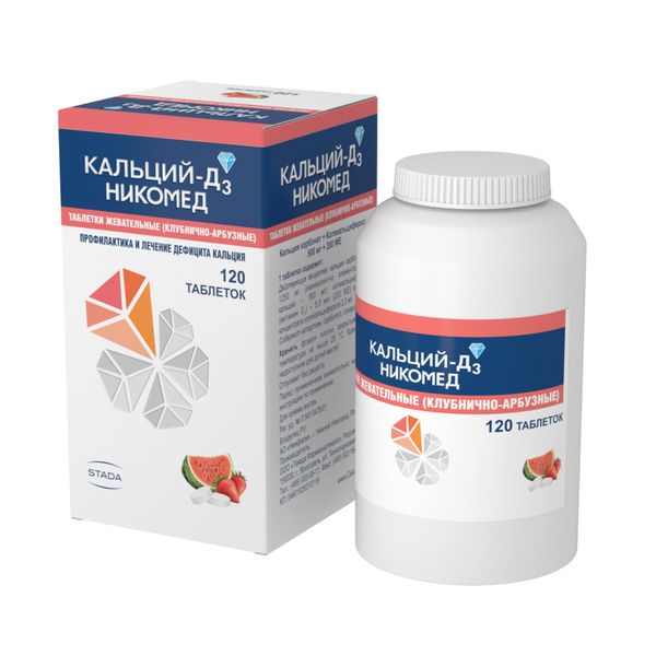 Кальций Д3 Никомед клубнично-арбузный таблетки жевательные 500мг+200МЕ 120шт