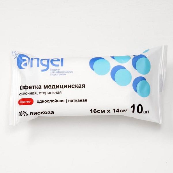 Салфетка медицинская сорбционная нетканая стерильная однослойная Angel 16см х 14см 10шт