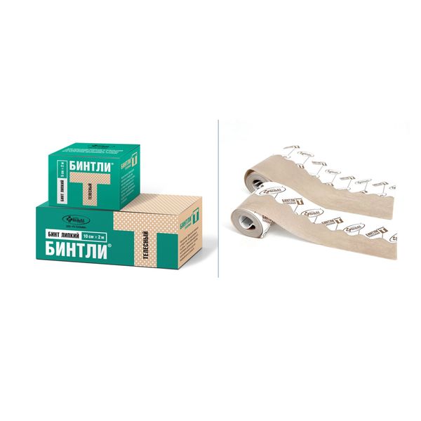 Бинт липкий на нетканом полотне телесный Бинтли-Т 10см х 2м