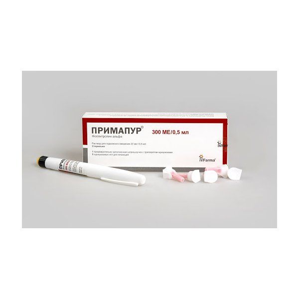 Примапур раствор для п/к введ. картридж в шприц ручке 22мкг/0,5мл 300МЕ 0,5мл+Игла одноразовая 5шт