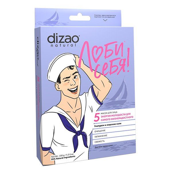 Маска мужская для лица гиалурон и морские соли Люби себя Dizao/Дизао 5шт