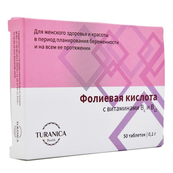 Фолиевая кислота с витаминами В6 и В12 Turanica/Тураника таблетки 100мг 50шт
