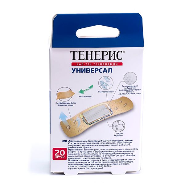 Пластырь бактерицидный на полимерной основе Universal Teneris/Тенерис 7,6см х 1,9см 20 шт.