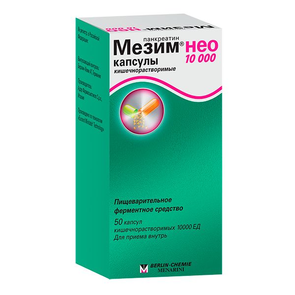 Мезим Нео 10000 капсулы кишечнорастворимые 10000ЕД 50шт