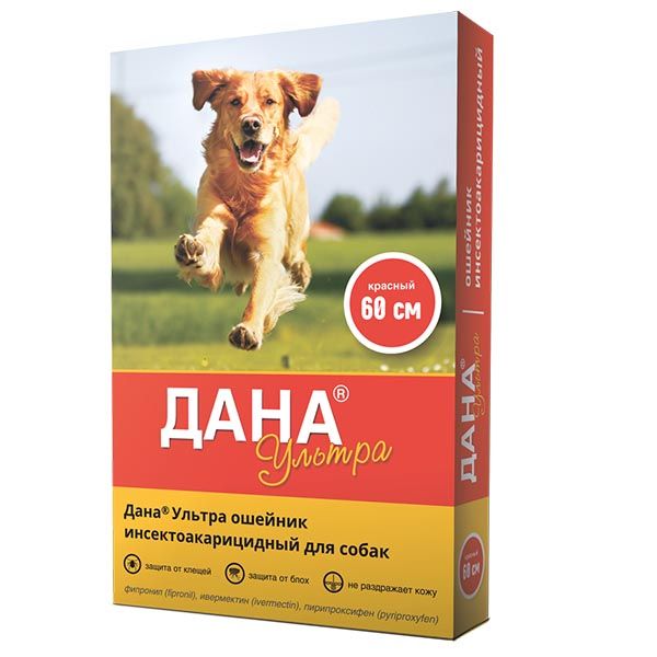 Ошейник инсектоакарицидный для собак красный Ультра Дана 60см