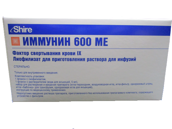 Иммунин лиофилизат для приг. раствора для инфузий 600МЕ+Растворитель 5мл+Набор для раств. и введ. препарата