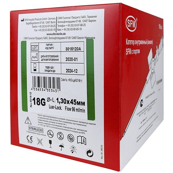 Катетеры внутривенные (канюли) с портом 1,3х45мм (18G) SFM Hospital/СФМ Госпиталь 100шт