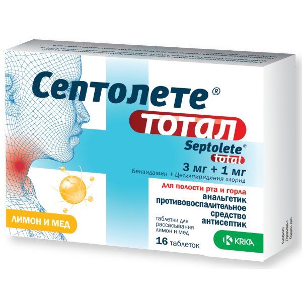 Септолете Тотал лимон и мёд таблетки для рассасывания 3мг+1мг 16шт