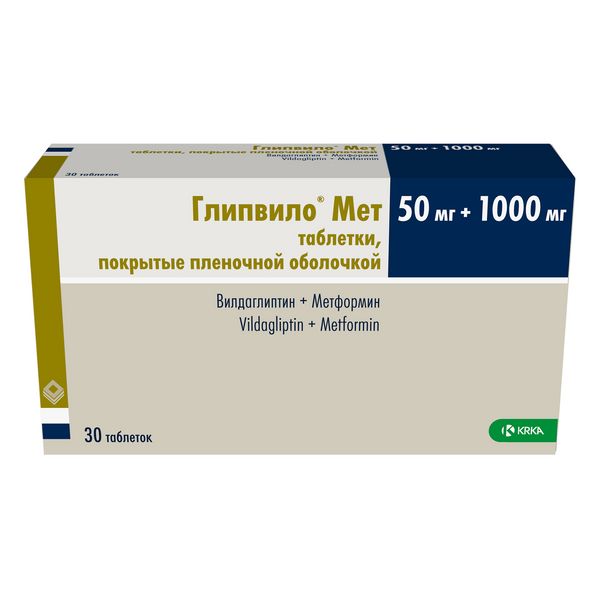 Глипвило Мет таблетки п/о плен. 50мг+1000мг 30шт