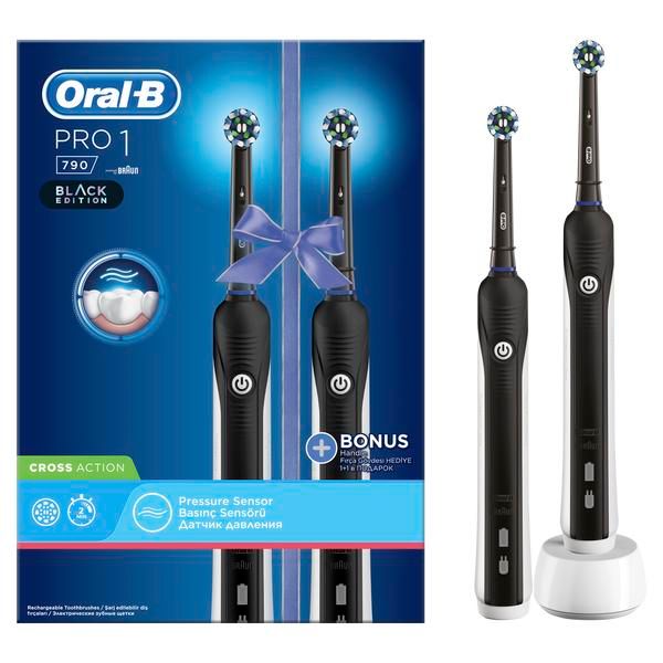 Набор Oral-B/Орал-би: Щетка зубная электрическая 3756 Pro790 Black Edition Cross Action с зарядным устройством 3757 черная 1шт+1шт