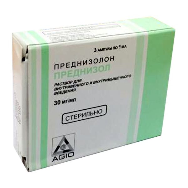 Преднизол раствор для в/в и в/м введ. 30мг/мл 1мл 3шт