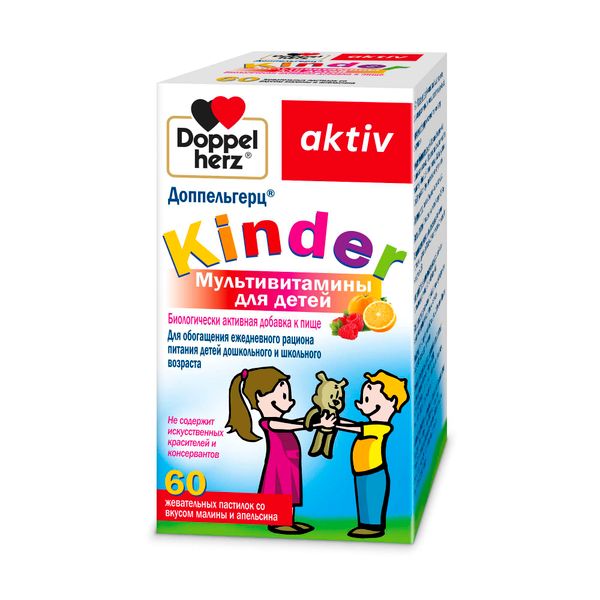 Мультивитамины малина и апельсин Activ Kinder Doppelherz/Доппельгерц пастилки жевательные 60шт