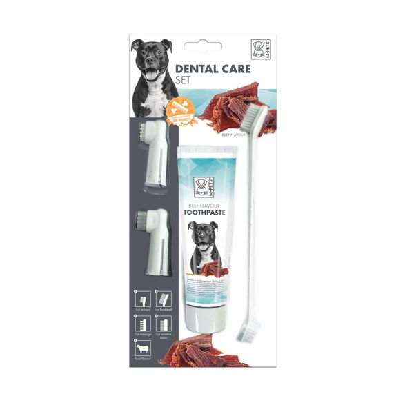 Набор для собак MPets: Паста зубная вкус говядины 100мл+Щетка двусторонняя+Щетка зубная на палец+Щетка массажная на палец