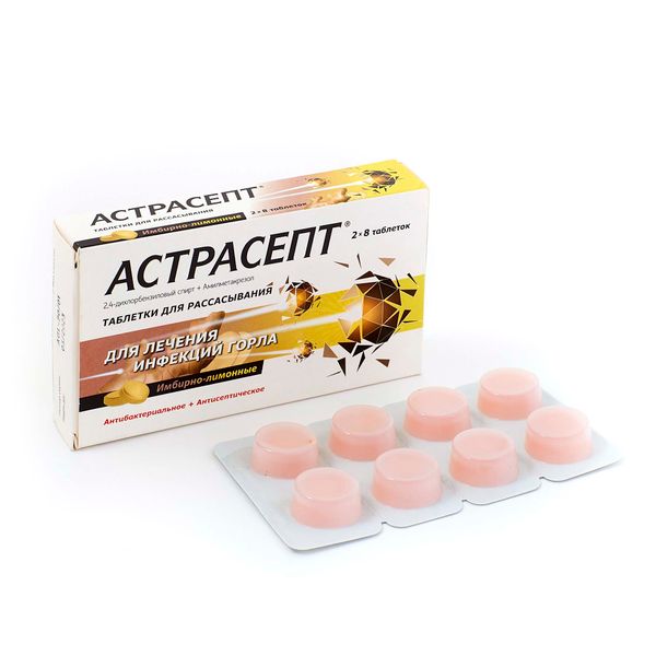 Астрасепт таблетки для рассасывания имбирно-лимонные 16шт