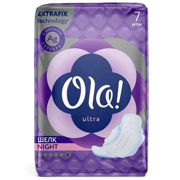 Прокладки ультратонкие шелковистая поверхность ионы серебра Ultra Night Ola! 7шт