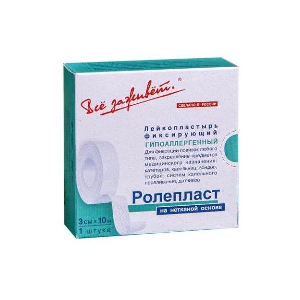 Лейкопластырь фиксирующий нестерильный на нетканой основе Ролепласт 3х1000см
