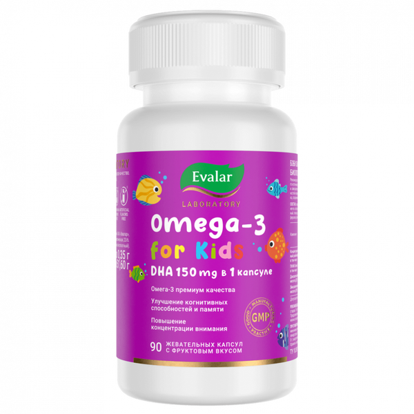 Омега-3 Бэби ДГК для детей с 3 лет со вкусом фруктов Эвалар лаборатория капсулы жевательные 0,35г 90шт