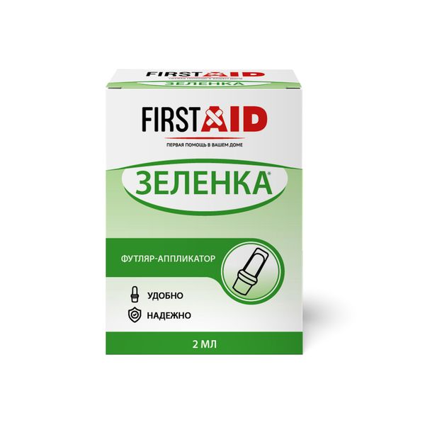 Валик ватный пропитанный раствором бриллиантового зеленого 1% в футляре First Aid/Ферстэйд 2мл