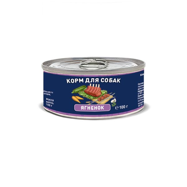 Корм влажный для собак ягнёнок Holistic Solid Natura жестяная банка 100г