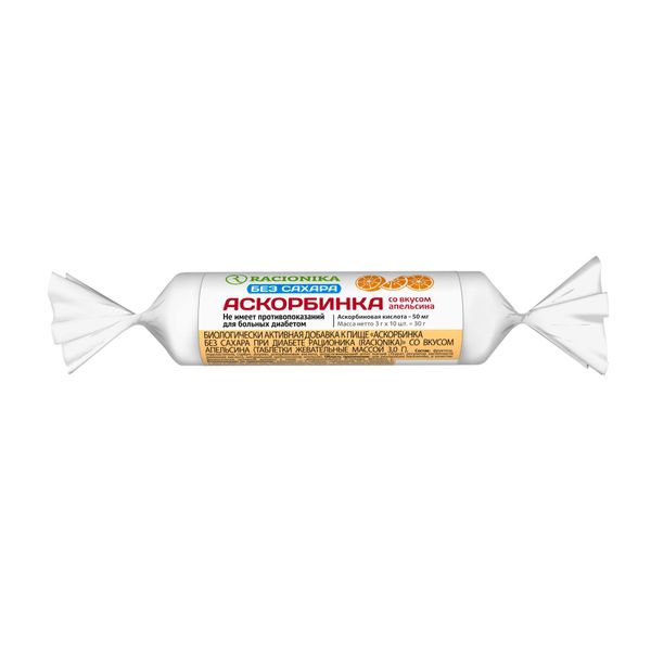 Аскорбинка при диабете со вкусом апельсина без сахара Racionika/Рационика таблетки 3г 10шт