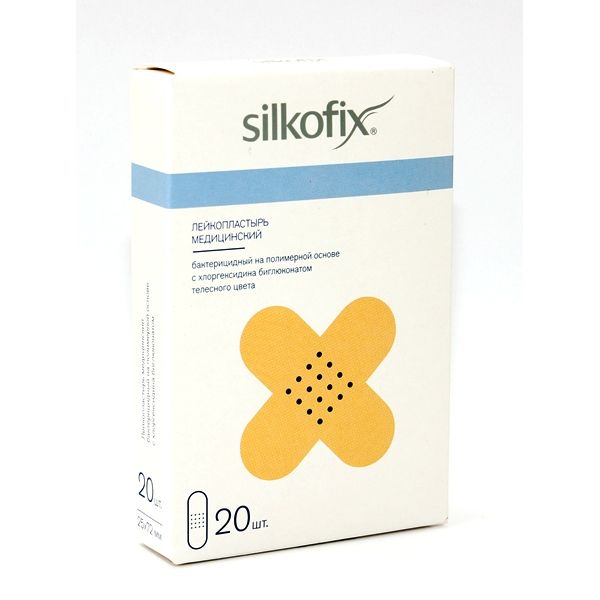 Пластырь бактерицидный полимерный с хлоргексидином телесный Silkofix/Силкофикс 2,5см х 7,2см 20 шт.