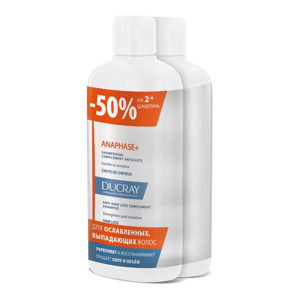 Набор Anaphase+ Ducray/Дюкрэ: Шампунь для ухода за ослабленными выпадающими волосами скидка -50% на второй фл. 400мл 2шт