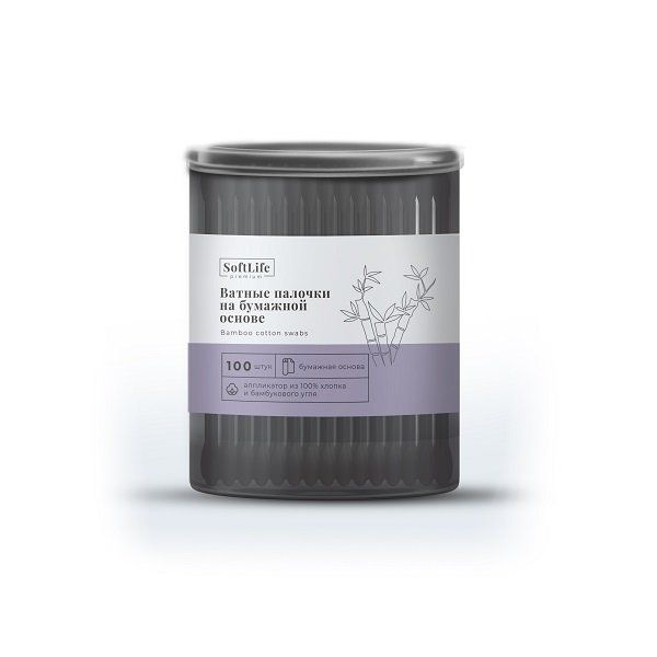 Палочки ватные на бумажной основе с добавлением бамбукового угля SoftLife/СофтЛайф Премиум №100